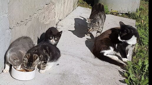 Наконец то кошка привела своих котят.