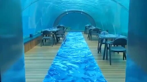 Стеклянный подводный ресторан 5.8 Undersea в курортном отеле Hurawalhi. Атолл Лавияни, Мальдивы.