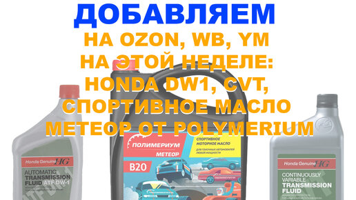 ДОБАВЛЯЕМ НА OZON, WB, YM НА ЭТОЙ НЕДЕЛЕ: HONDA DW1, CVT, СПОРТИВНОЕ МАСЛО МЕТЕОР ОТ POLYMERIUM