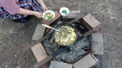 Летом ушица на костре с дымком - что может быть вкуснее!