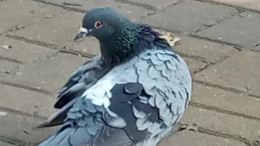 Голубь чешется, выглядит так будто его кто то кусает, он аж нервничать начинает