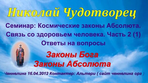 Ченнелинг Николай Чудотворец Семинар: Космические законы Абсолюта. Связь со здоровьем человека Занятие 11 часть 2 (2) Законы Бога и здоровье