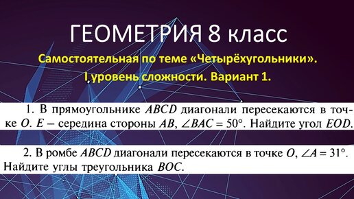 Геометрия 8 класс. Решаем самостоятельную по теме Четырёхугольник. 1 уровень сложности.