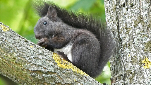 Черненькая белочка -пушистая красавица! Спустилась к нам за орешком! Елагин остров.
