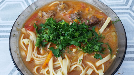 Лагман в узбекском казане. Лагман из говядины.