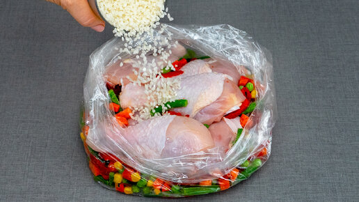 Никакой грязной посуды! Куриные ножки с рисом, в пакете и ужин готов