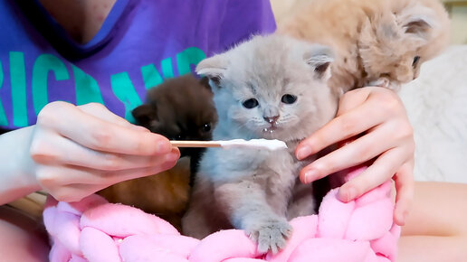 Крошечные котята впервые реагируют на вкус творога