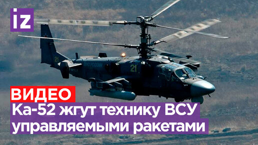 «Прямое, отход вправо»: вертолеты Ка-52 сжигают бронетехнику ВСУ управляемыми ракетами «Вихрь»