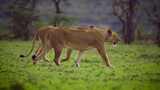 Прогулка львов на природе