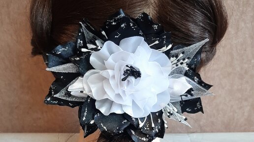 МК. Оригинальная и нарядная заколка из атласной ленты.