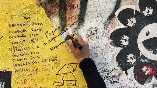Знаменитая «Стена Цоя» на Арбате - никогда так близко не читал надписи.