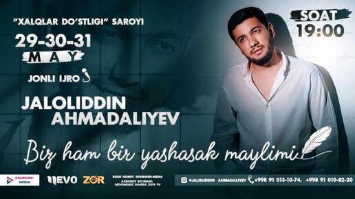 Afisha - Jaloliddin Ahmadaliyev | 2023-yil 29-30-31-may konsert beradi
