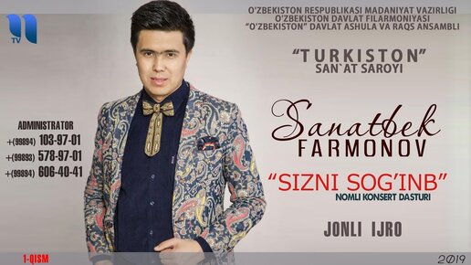 Sanatbek Farmonov - "Sizni sog'inib" nomli konsert dasturi 2019 (1-qism)