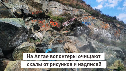 На Алтае волонтеры очищают скалы от рисунков и надписей.