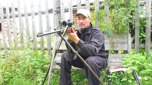 ДЛЯ ТОЧНОГО ВЫСТРЕЛА СКОЛХОЗИЛ ТРЕНОГУ ИЗ ДЕРЕВА. ПОДГОТОВКА К ОХОТЕ НА ЛИСУ С КАРАБИНОМ ИЗ ЗАСИДКИ.