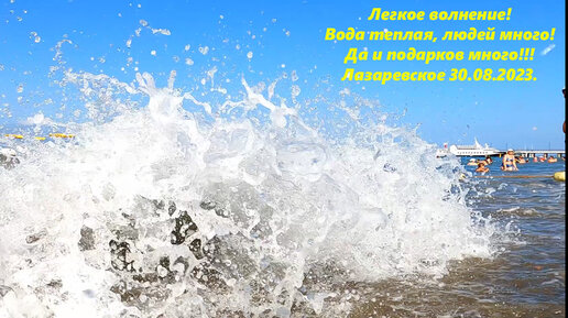 Море слегка волнуется! Вода теплая., людей много! Лазаревское 30.08.2023.🌴ЛАЗАРЕВСКОЕ СЕГОДНЯ🌴СОЧИ.