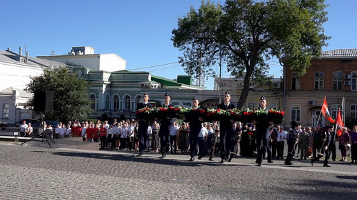 Торжественная церемония возложения цветов к стеле «Город воинской славы» в Таганроге.