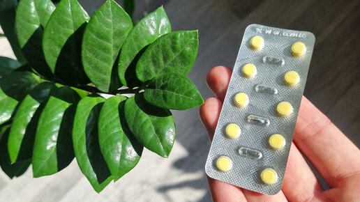 Добавьте 2 таблетки в полив, и даже слабый замиокулькас воспрянет, позеленеет и начнёт расти !