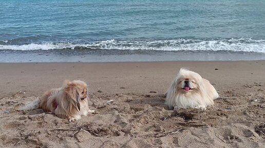 Пекинесы Миша и Соня на отдыхе в Коктебеле в ,, Тихой бухте,,
