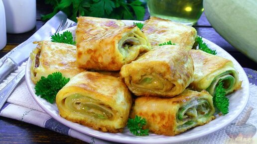 Сочно, сырно, аппетитно! Рулетики из лаваша с кабачками и сыром.