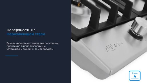 Профессиональная газовая варочная панель ZUGEL ZGH451X