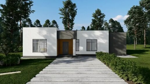 Обзор фасада одноэтажного дома площадью 120м2 с плоской кровлей