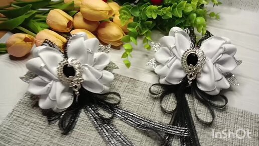 Шикарные банты из репсовой ленты Школьные банты в черно-белом цвете МК бантов из репсовой ленты 4 см