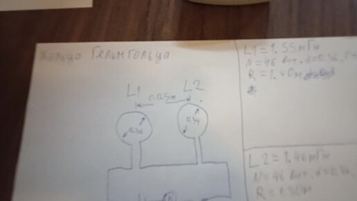 Кольца Гельмгольца для установки по изучению ЯМР воды. Расчёт L=1.6 мГн. Замер B=0.35 мТл (I=1.6 A)