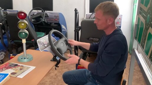 Тренировка работы с рулевым колесом на специальном стенде