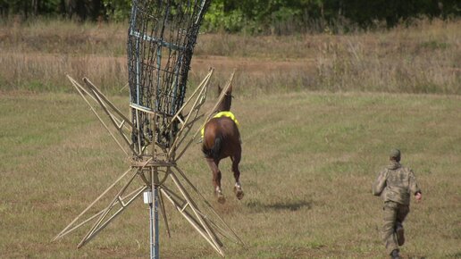 Конь на скачках взбрыкнул и сбросив наездника сбежал и начал гонять девушек конкурщиц по полю После вовсе сбежал с ипподрома в городH2760004