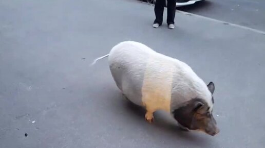 Самый красивый поросенок города на Неве на прогулке