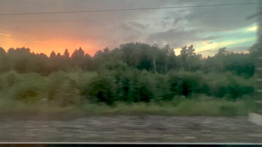 РЖД. Россия из окна поезда. Закат.