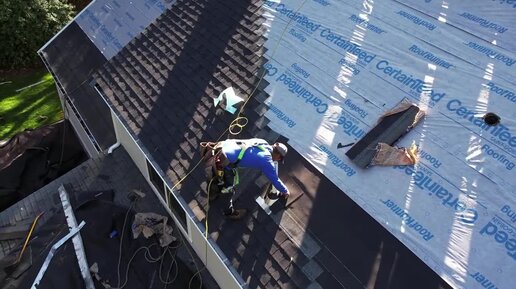 Технология укладки гибкой черепицы на примере Landmark. Показаны все этапы монтажа от подкладочных ковров до финишного покрытия и коньков.