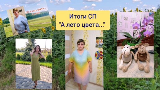 Итоги в СП "А лето цвета..." Довязала пуловер спицами, связала 2 платья спицами и крючком, 3 овечки,4 мочалки, коврик в ванну,летнюю сумку.