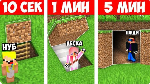 😎НУБ И ПРО СТРОЯТ БУНКЕР ЗА 10 СЕКУНД 1 МИНУТУ 5 МИНУТ В МАЙНКРАФТ! ШЕДИ ЛЕСКА И НУБИК MINECRAFT