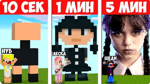 👧НУБ И ПРО СТРОЯТ УЭНСДЭЙ ЗА 10 СЕКУНД 1 МИНУТУ 5 МИНУТ В МАЙНКРАФТ! ШЕДИ ЛЕСКА БРОК MINECRAFT