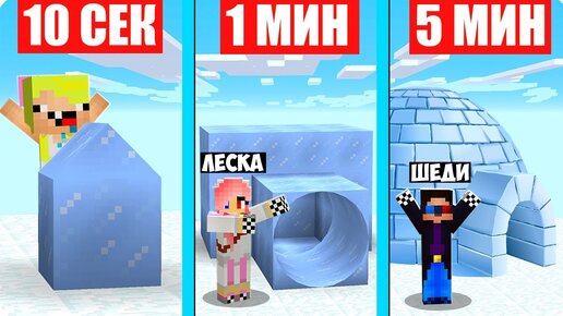 ❄️НУБ И ПРО СТРОЯТ СНЕЖНУЮ БАЗУ ЗА 10 СЕКУНД 1 МИНУТУ 5 МИНУТ В МАЙНКРАФТ ШЕДИ ЛЕСКА НУБИК MINECRAFT