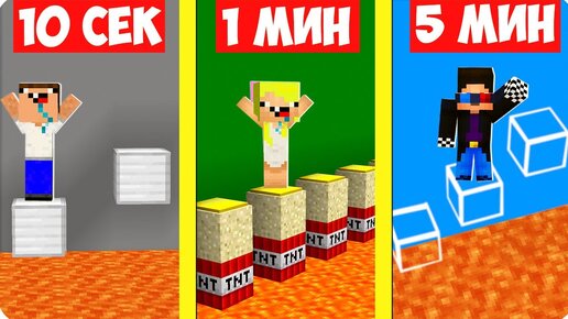 😎НУБЫ И ПРО СТРОЯТ ПАРКУР ЗА 10 СЕКУНД 1 МИНУТУ 5 МИНУТ В МАЙНКРАФТ! ШЕДИ НУБИК И БРОК MINECRAFT