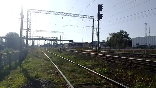 2ТЭ116-1445. Идёт на запад с порожняком. Приветливая бригада. Долбанутый велосипедист проехал перед самым поездом на красный. Петрозаводск.