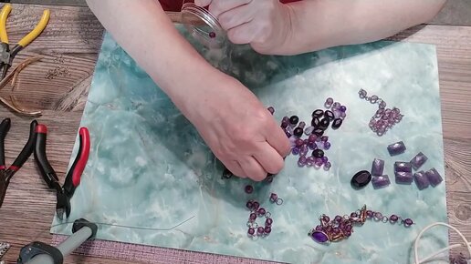 Многорядный браслет на мемори проволоке - проволока с памятью.В фиолетовых тонах.