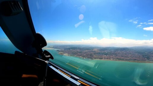 Заход на посадку Airbus А320. Вид из кабины пилота Airbus А320 с прекрасными обзором на город Трабзон, Турция
