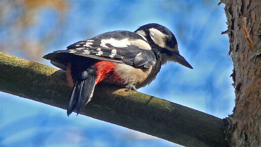 Красавчик дятел завтракает на сосновой ветке! Екатерининский парк. Царское Село.