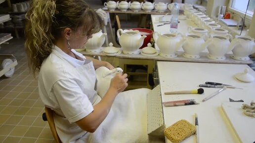 Ручное производство Чешского фарфора. Ретуширование изделий перед обжигом.