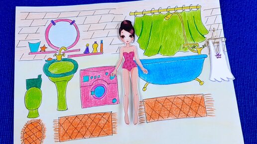 ЛД оформляем личный дневник. Рисуем ванную комнату для бумажной куклы. Learning to draw.