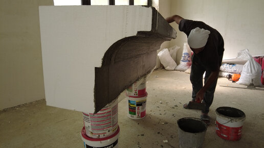 Обучаю рабочих заказчика обрабатывать фасадные декоративные элементы Клеем для СФТК Мокрый Фасад с Архитектурной Стеклотканевой Сеткой
