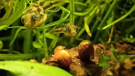 Карликовые тетрадоны едят улиток))