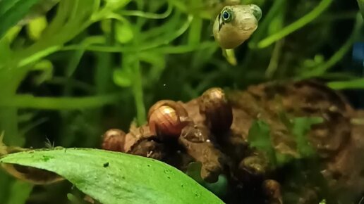 Карликовые тетрадоны охотятся и едят / Pea Puffer (Dwarf Pufferfish) eating snails