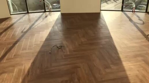 Кварц-винил "елочкой" на теплые полы в квартире с панорамным остеклением "одним контуром" без порогов.