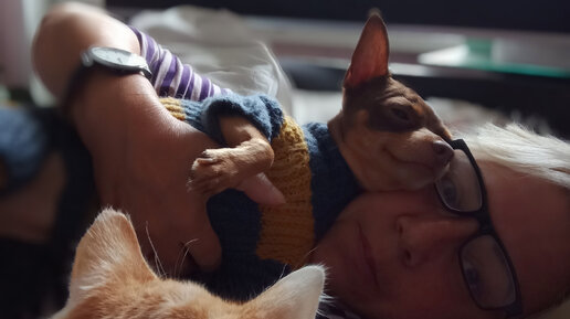 Вот так и живём. Холодно. Перед сном жмемся друг к другу. Вася не хочет делать массаж!