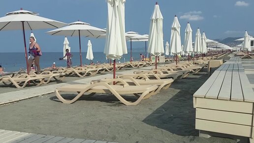 Пляж Ривьера (Звездный): раннее утро, пляж начинает работу